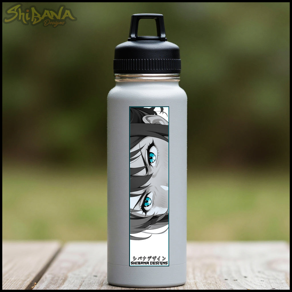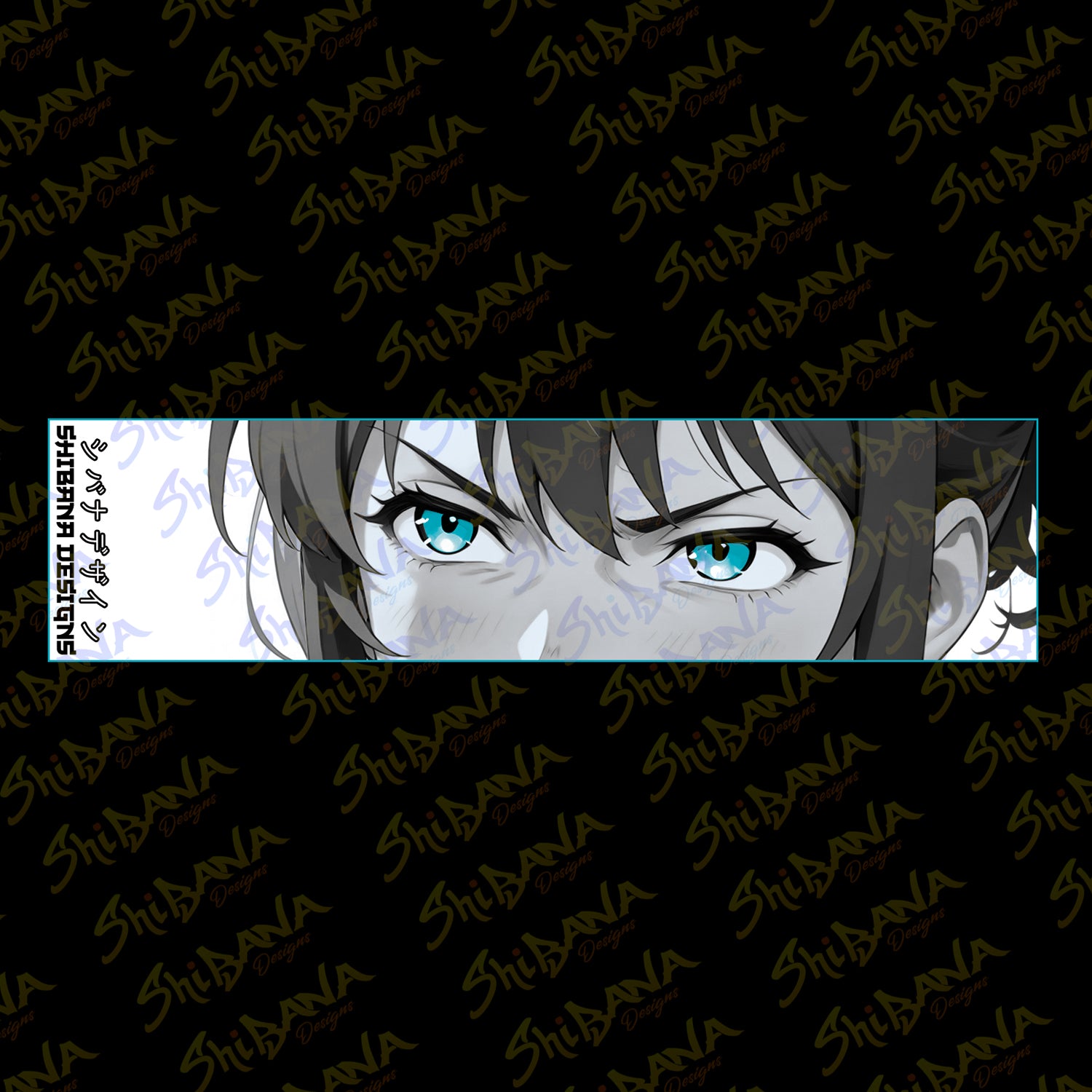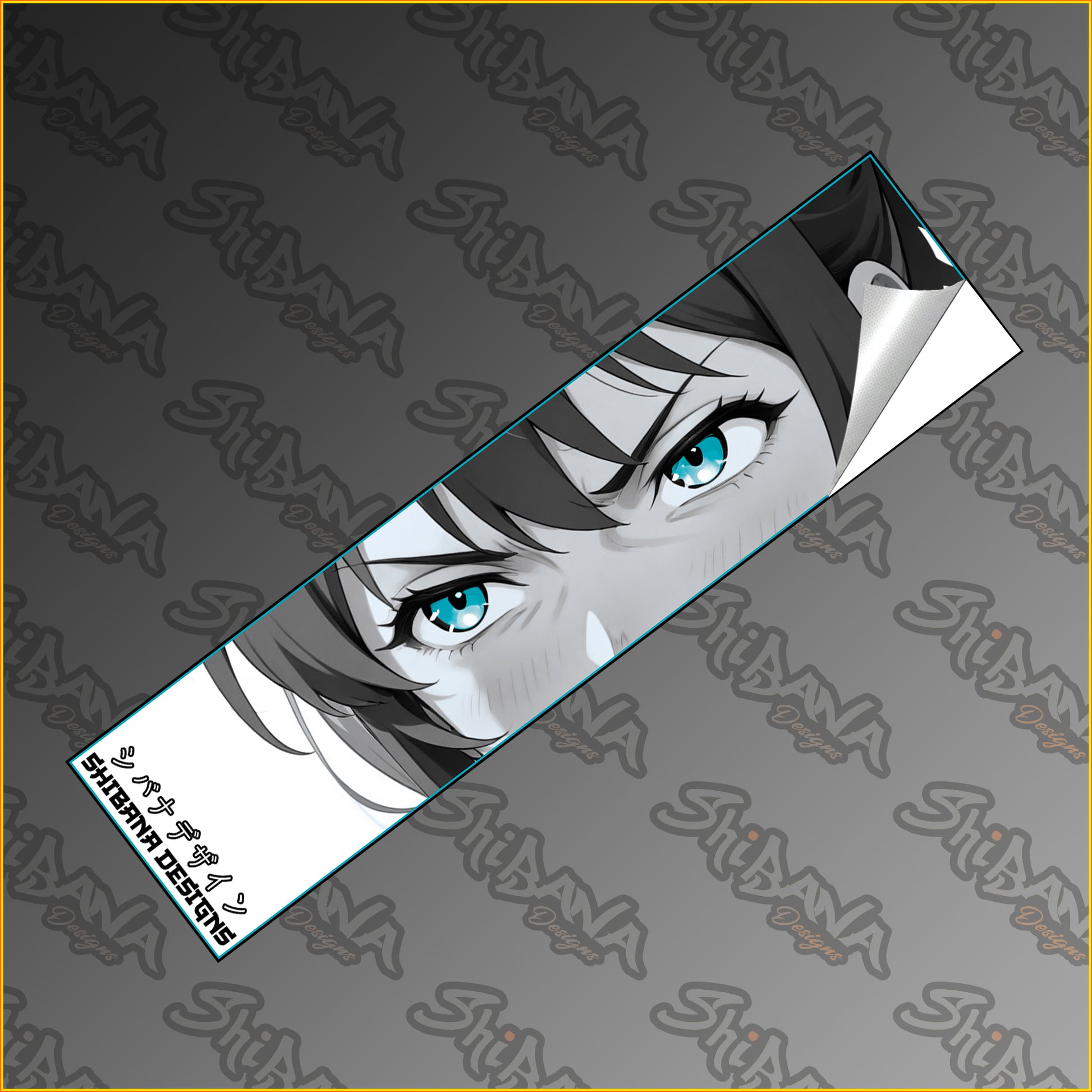Blue Anime Eyes Manga Panel Box Slap Sticker | Holographic Vinyl Waterproof Art