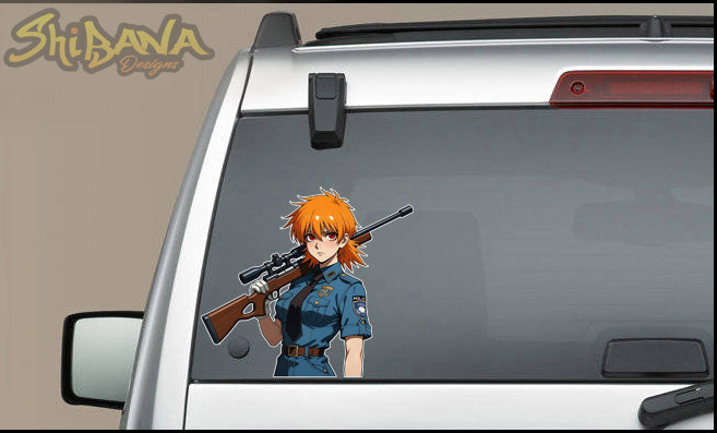Hellsing Seras Victoria Police Girl Vinyl Sticker | Custom Fan Art w/ Rifle Decoration