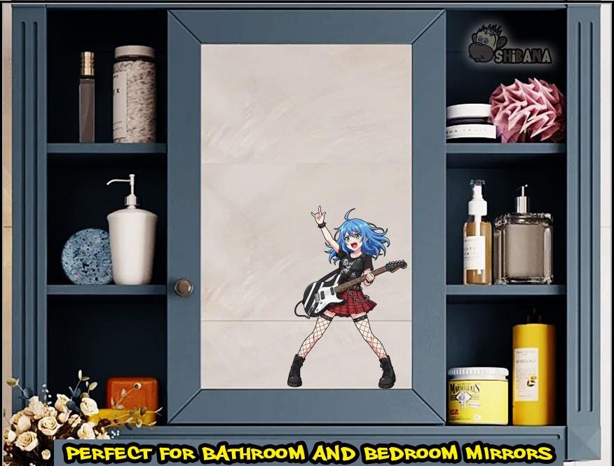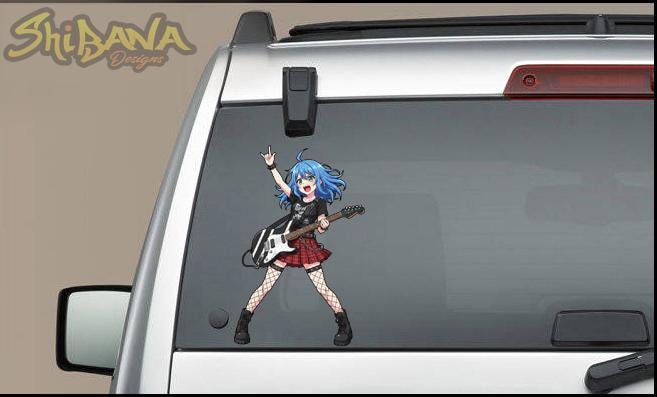 Punk Guitar Anime Girl Rocking Out Die-Cut Decal Vinyl Sticker | Kawaii