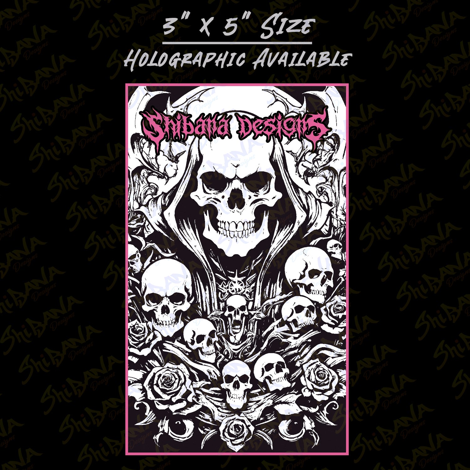Represent your love for the darker side and the macabre. Available in both regular and holographic finish!