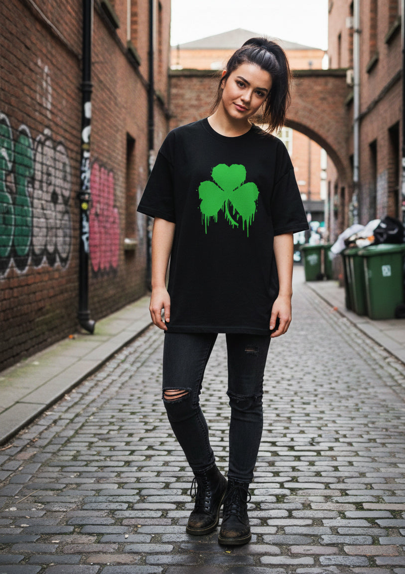 Street Art Irish Clover T-shirt | Saint Patrick's Day Dripping Paint Tee